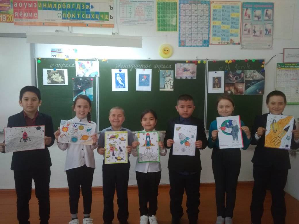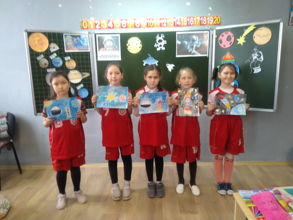 Для учащихся школы в библиотеке была организована выставка «Ключ – на старт! «Поехали!». Бурные обсуждения, быстрые правильные или неточные ответы, догадки и версии - все это создавало атмосферу поиска и творчества. Учащиеся начальных классов провели классные часы и уроки рисования «Он был первый», в ходе которых были раскрыты интересные факты биографии первого космонавта планеты, строительства космодрома Байконур, и о том, как проходила подготовка к полету.