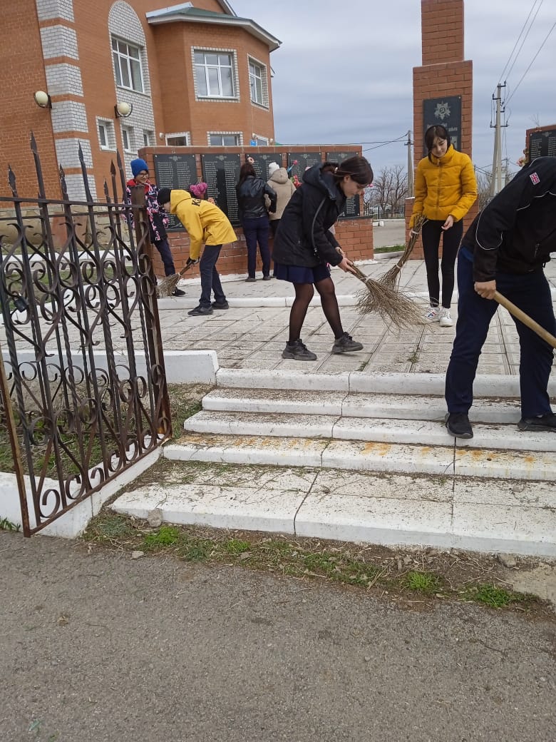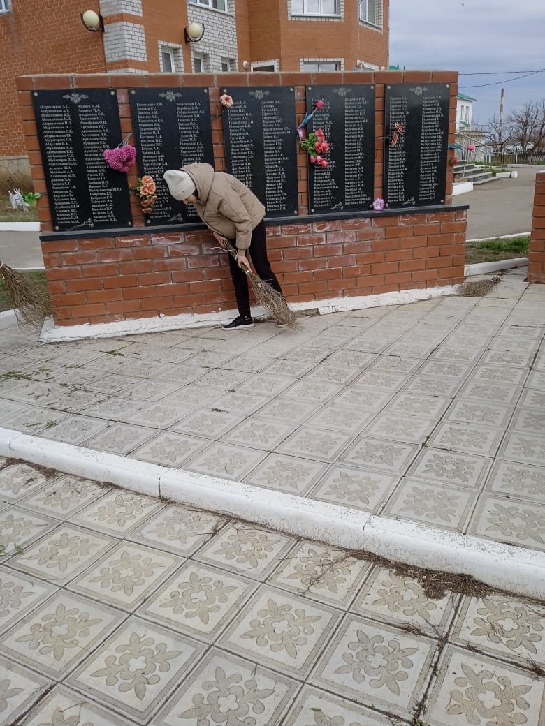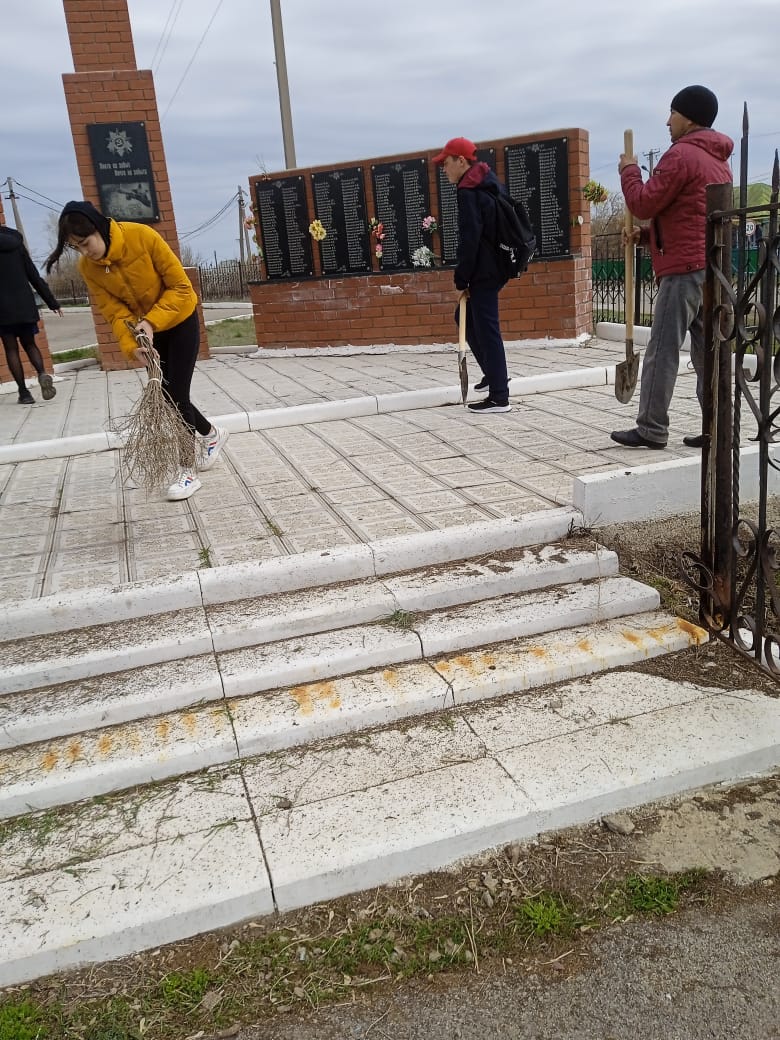 22 апреля силами учащихся юнармии привели в порядок территорию возле обелиска воинам ВОВ.