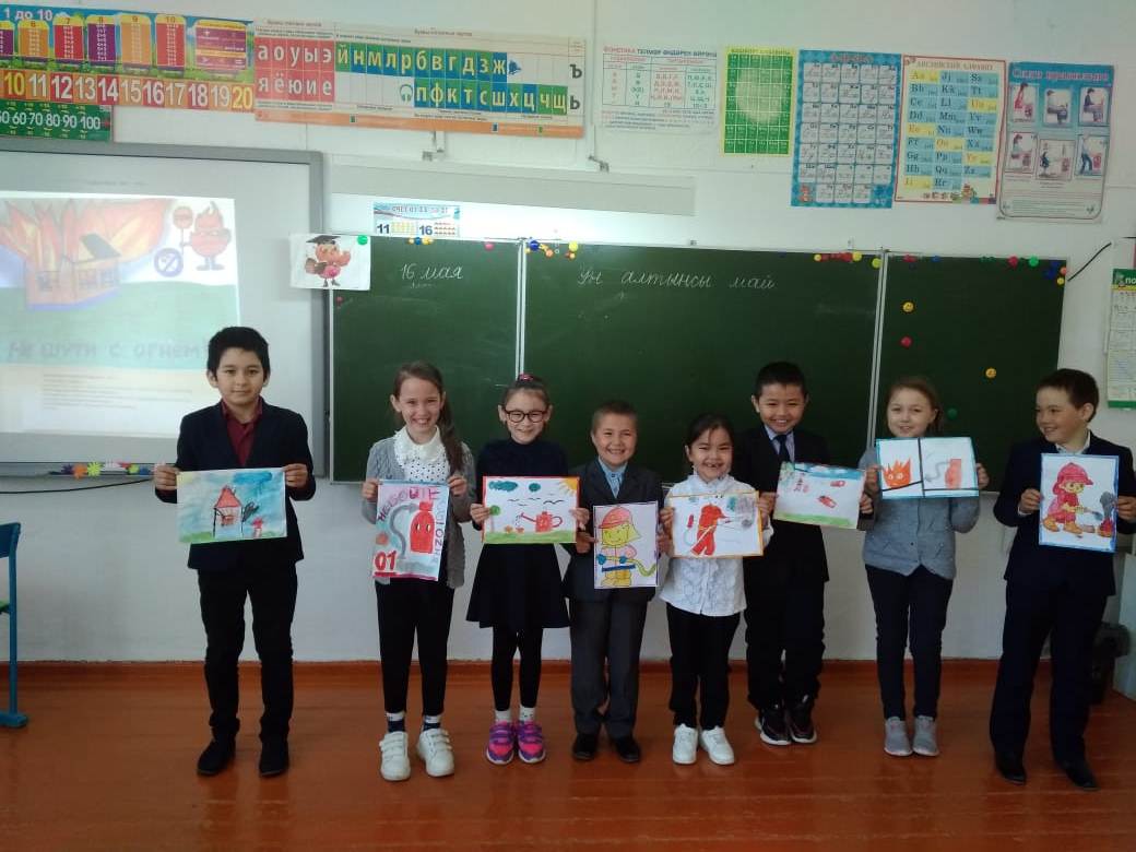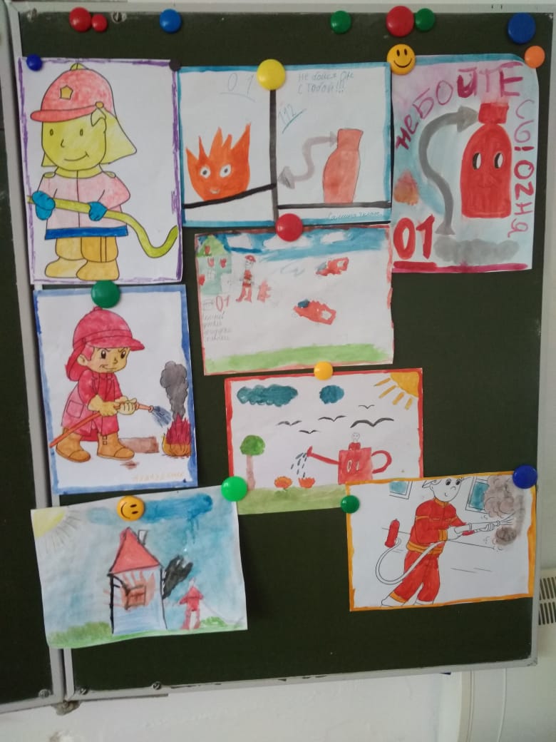 В рамках месячника по пожарной безопасности провели уроки безопасности среди 8 классов. Конкурс рисунков 1-8 классов, а также филиалов школы.