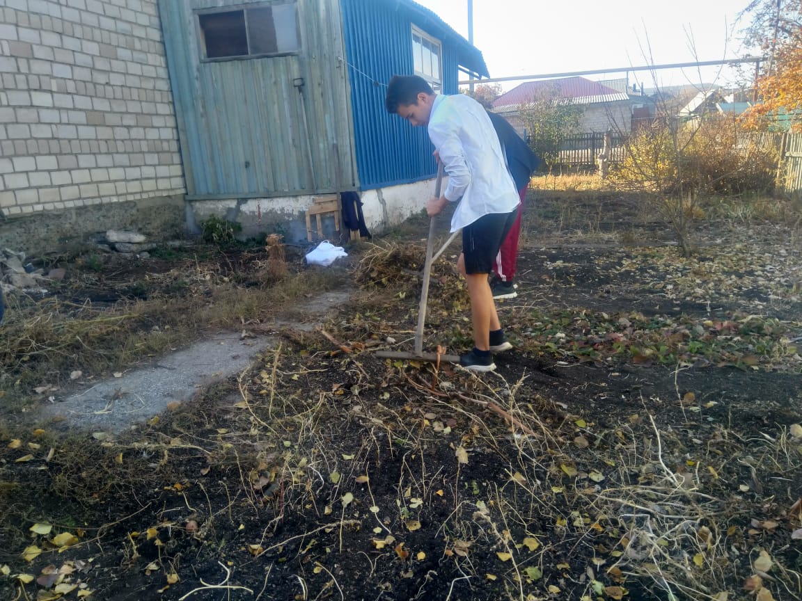 Ученики 10 класса посетили ветерана труда Кириченко Т.Н. Ребята помогали ветерану в уборке осеннего мусора. Но главное для детей ее рассказы. Ветеран труда со слезами на глазах вспоминает о своём послевоенном детстве, о том, как трудно приходилось женщинам в ту пору. Учащимся очень интересно, как жили и работали в те далекие годы, как вели свои хозяйства, чему радовались и верили. Ребята с интересом слушали и ответы на свои вопросы. Все вместе обсуждали современное поколение, и школьное образование, и добрые дела. Она очень благодарна детям за заботу и всегда с радостью встречает нас, как дорогих гостей. Это и есть главная награда для ребят – искренняя благодарность ветерана и новые идеи, которые пригодятся современным тимуровцам в новом, полном добрых дел году.