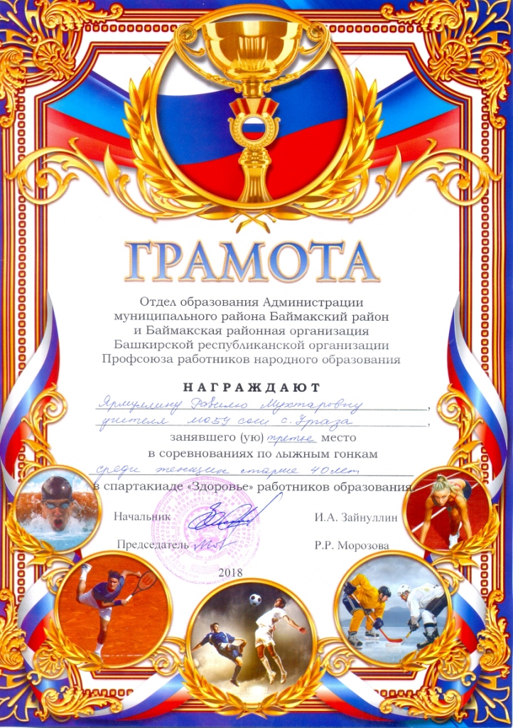 Лыжные гонки: победители - Захарова И.А. (МОБУ ДО СЮН), Исяндавлетова Ф.А. (Большебасаево); Сынгизов А.А. (лицей № 4 г. Баймака), Абдрахимов К.Р. (БЛИ).