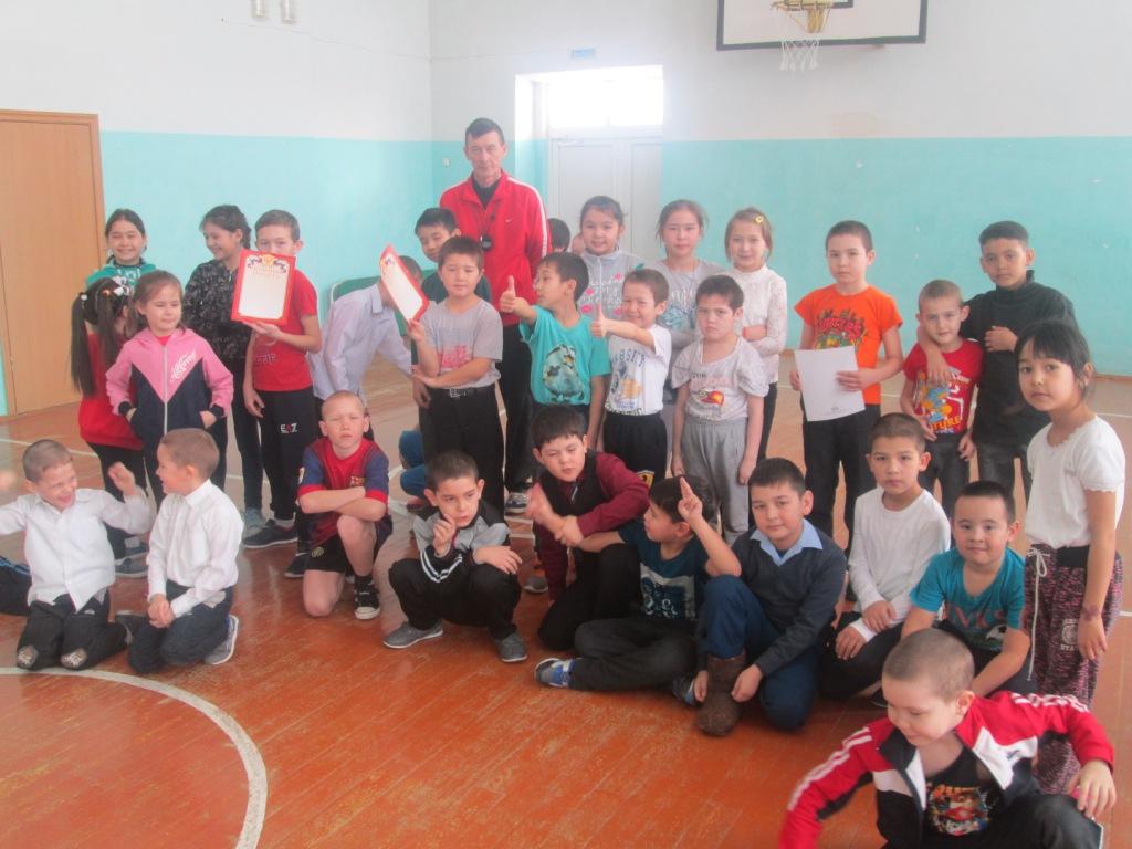 15 февраля среди 2-4 классов, учителя Ярмухаметов Ф.Т. и Далхин Р.К. провели "Веселые старты"