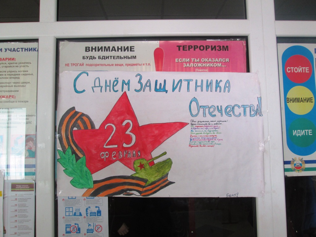 В рамках месячника гражданской обороны в фойе организована выставка плакатов посвященная "Дню защитников отечества". "Буду родину любить, буду в армии служить"