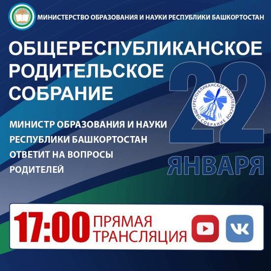 Встреча министра образования и науки Республики Башкортостан Айбулата Хажина с родителями школьников пройдёт в формате онлайн-дискуссии и будет транслироваться в прямом эфире на ютуб-канале Министерства образования и науки Республики Башкортостан и в официальной группе Министерства в социальной сети «ВКонтакте».