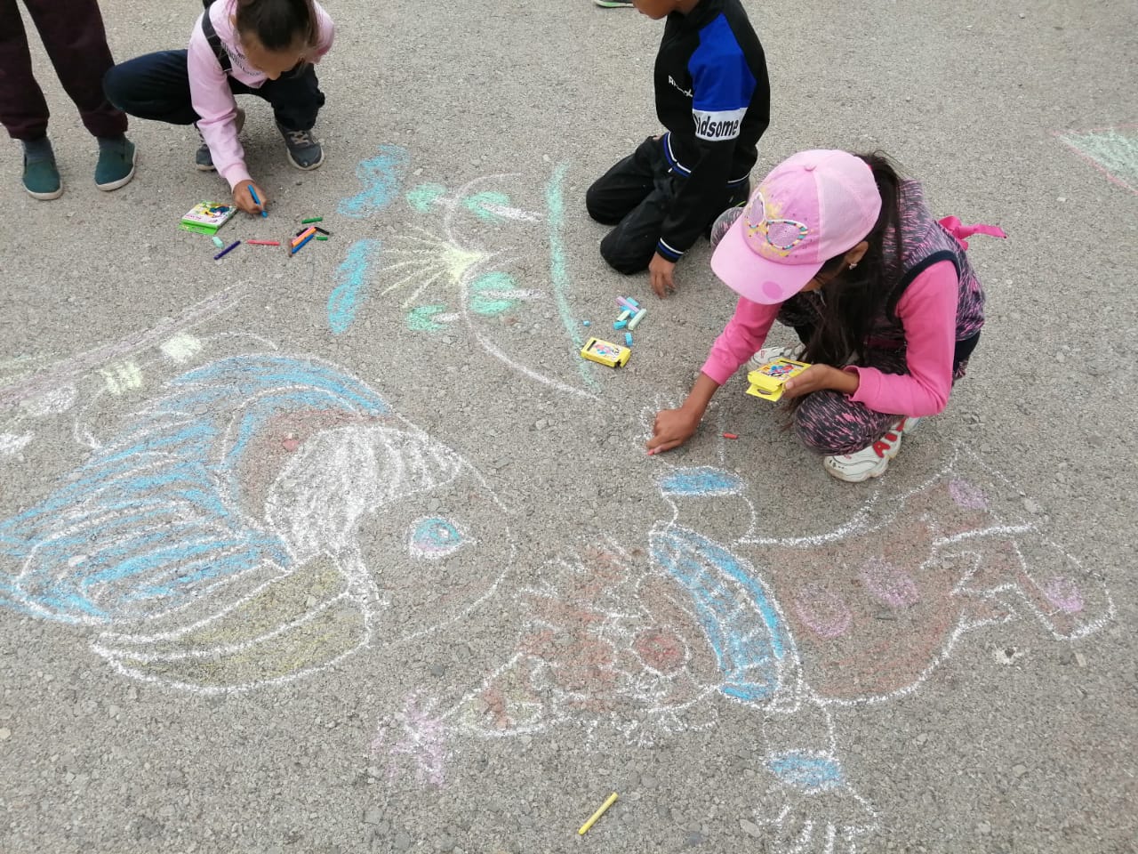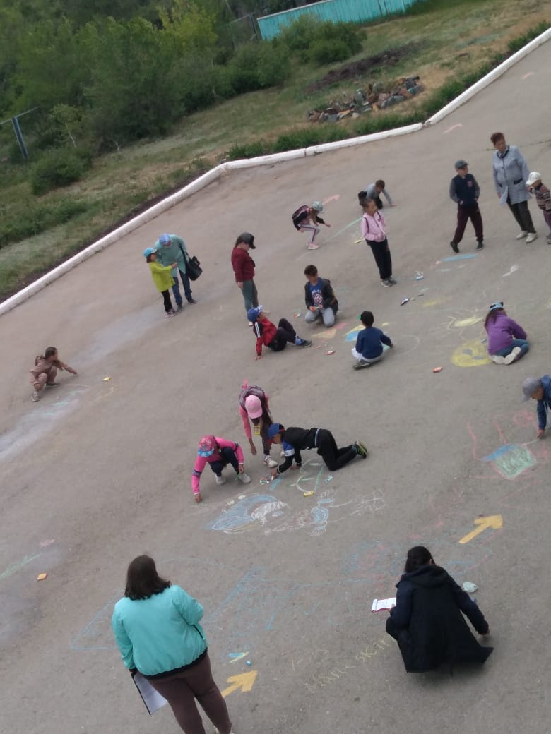 На празднике дети с огромным воодушевлением рисовали на асфальтной дорожке. На рисунках были изображены цветы, солнце, небо и т.д. Интересные конкурсы и викторины никого не оставили равнодушным.