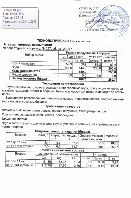 Технологическая карта N173 каша перловая