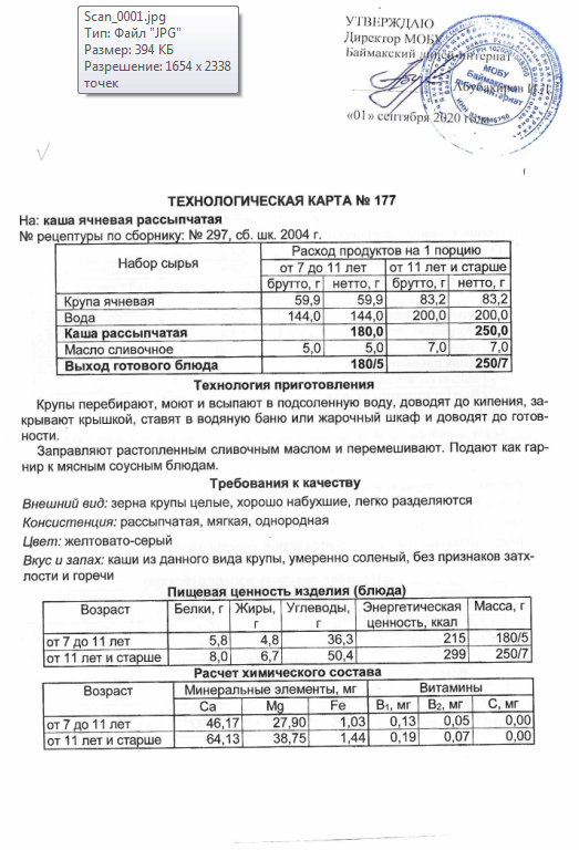 Технологическая карта N177 каша ячневая