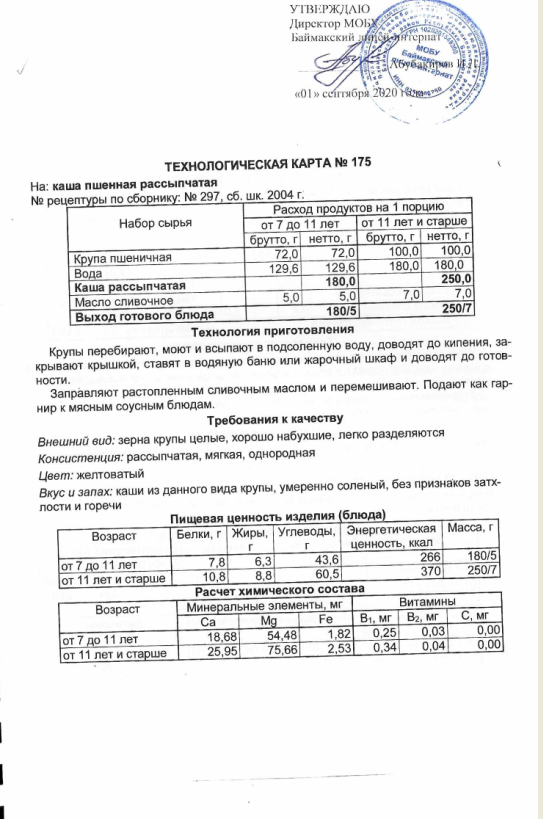 Технологическая карта N175 каша пшенная