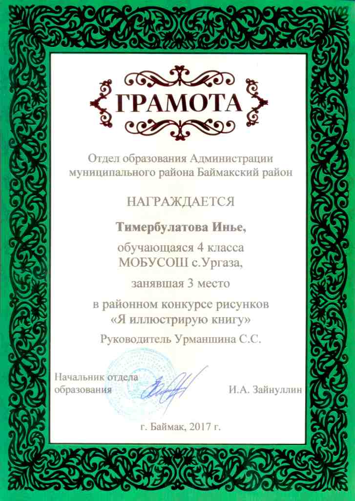 Тимербулатову Инье, учащуюся 4 класса, занявшую 3 место.