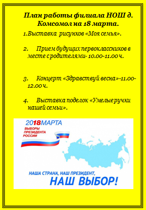 План работы филиала НОШ д. Комсомол на 18 марта.