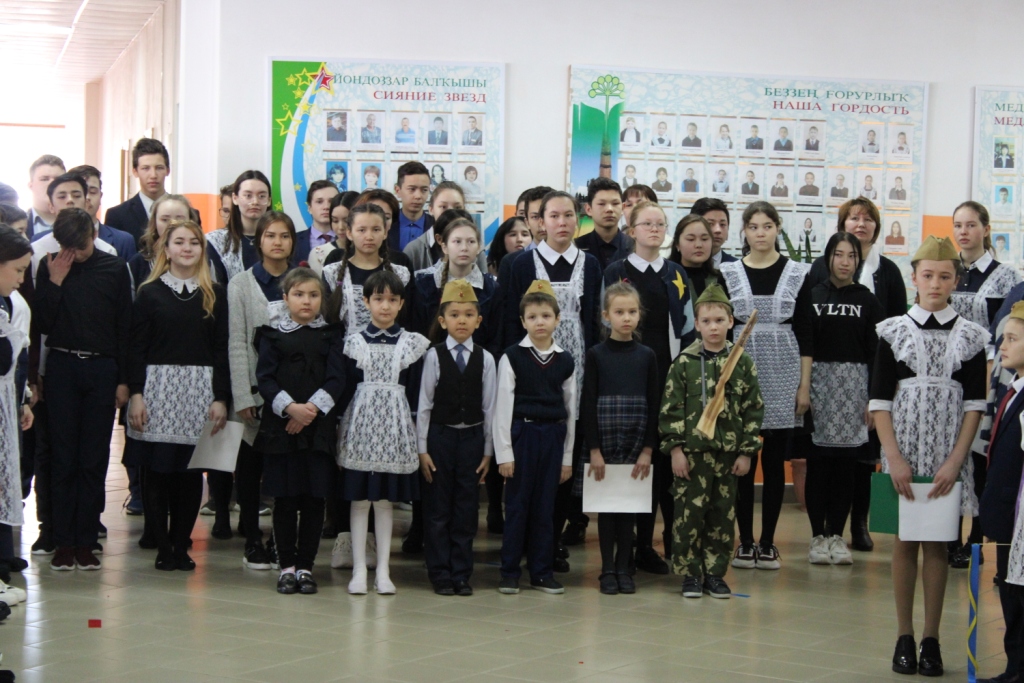 Торжественная линейка, в рамках "Месячника военно-патриотического воспитания, посвящённого Дню защитника Отечества.